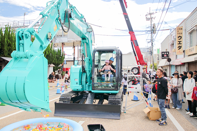 スーパーボールすくいでは、バケットの先に料理用のお玉が取り付けられており、子どもたちはオペレーターの膝に座りながら器用にスーパーボールをすくった。高所作業車の試乗では、商店街に集まった多くの人が手を振る中、ひと時の眺めを楽しんだ。