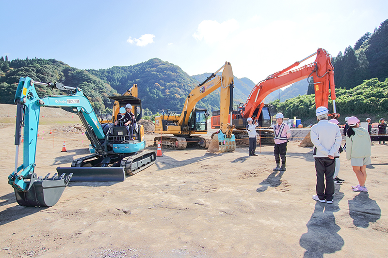 大分河川国道事務所と三光本耶馬渓道路3工区安全協議会(7社10工事、会長・松尾毅㈱菅組本社土木課長)は6日、工事が進む中津日田道路の三光本耶馬渓道路Dランプ付近で、地元向け見学会を開いた。近くの上津小学校5・6年児童と近隣住民が参加。