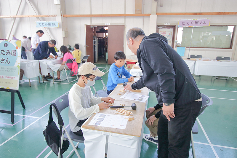 会場では小学校高学年を対象にしたものづくり教室「キッズワーク大分」、親子で参加できる「親子技能ふれあい広場」、各技能士会のブース出展などがあり、朝から多くの来場者でにぎわった。造園と建築配管の技能コンクール、学生溶接選手権も開かれた。