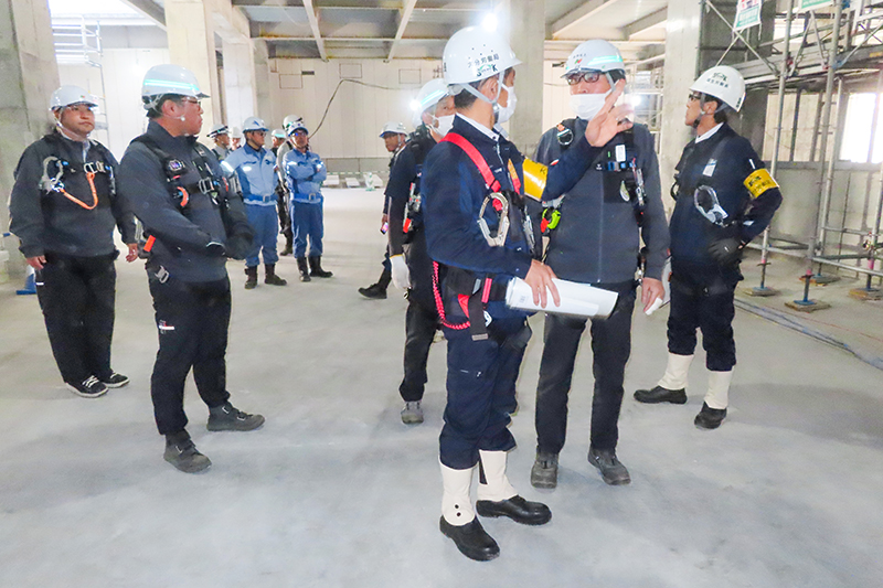 秋山局長は「年末年始は労働災害が発生しやすい時期だ。県内ではこの時期に過去10年間で59人が亡くなっているが、今年は建設業で2人の墜落事故が発生している。本日のパトロールが現場の安全管理を見直し災害防止につながる契機になると考えている。今回は整理整頓ができているかや墜落防止のハーネスを装備しているかを確認した」と話した。