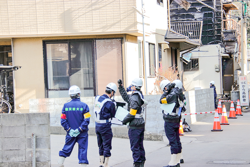 大分労働基準監督署の松島昌彦署長、阿南宏幸安全衛生課長、建設業労働災害防止協会県支部の石川雅久専務理事らは5日、大分市佐賀関田中地区の大規模火災現場を訪れ、現場内をパトロールした。復旧・復興へ向け、がれき処理や損壊した家屋の撤去作業などが始まる前に、どのような災害防止対策が必要かなどを確認した。