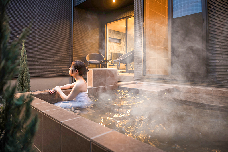 昨年6月に別府市楠本町に1棟貸しの宿泊施設「三和泉」の「紅」「碧」の2棟を展開。今年7月からは三和泉の新たな施設として、別府市鉄輪に「響」「雅」「桜」の3棟を新築し営業を始めた。3棟とも内風呂と露天風呂が一つずつあり、「雅」と「桜」はゲスト11人対応、「響」は12人対応となっている。既存の「紅」「碧」とともに多くの国内外観光客に利用されている。