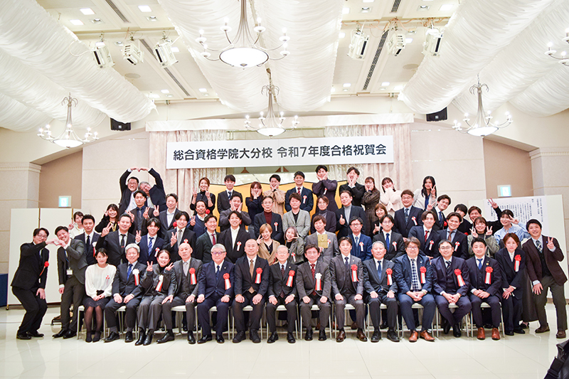 ㈱総合資格が運営する総合資格学院大分校(梶原賢大学校長)は12日、大分市内で2025年度の1・2級建築士試験などの合格者祝賀会を開き、合格者や来賓など約60人が出席した。