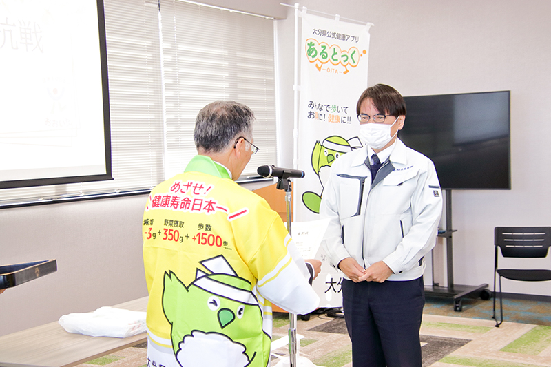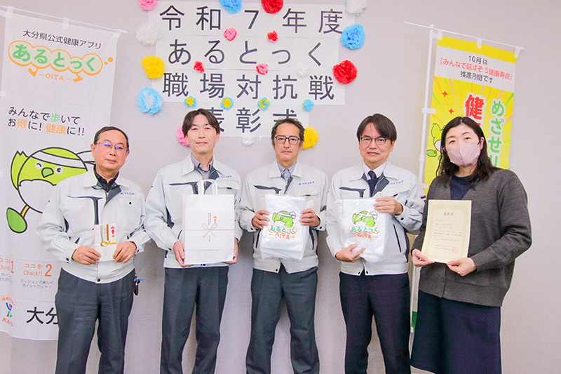 県東部保健所(藤内修二所長)は22日、2025年度第2回「おおいた歩得(あるとっく)」職場対抗戦で入賞した管内事業所チームの表彰式を別府総合庁舎で行った。386チームが参加し、昨年10~11月の2カ月間で実施された。