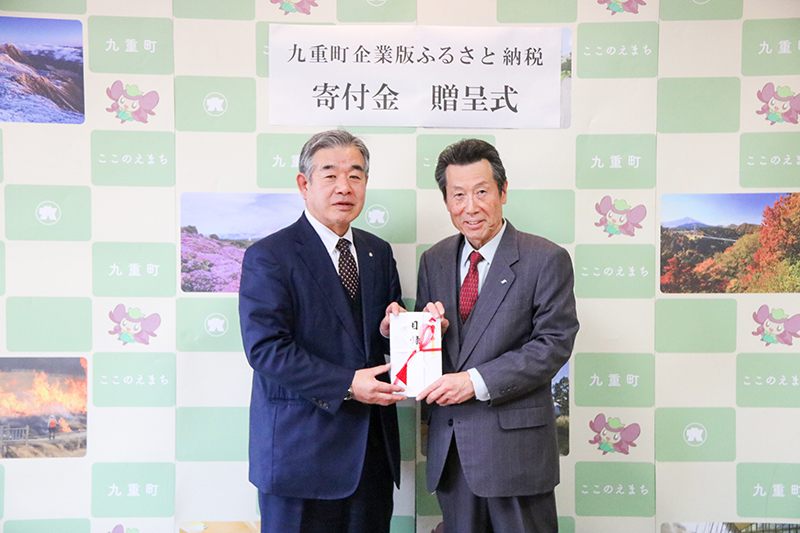 九重・玖珠町へ寄付金 新成建設が創業50周年で無料