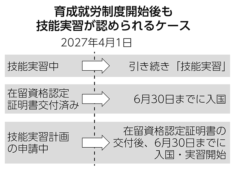 技能実習の経過措置を整理 育成就労への完全移行は29年度末