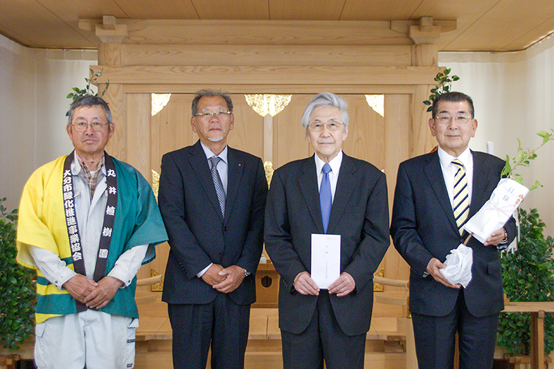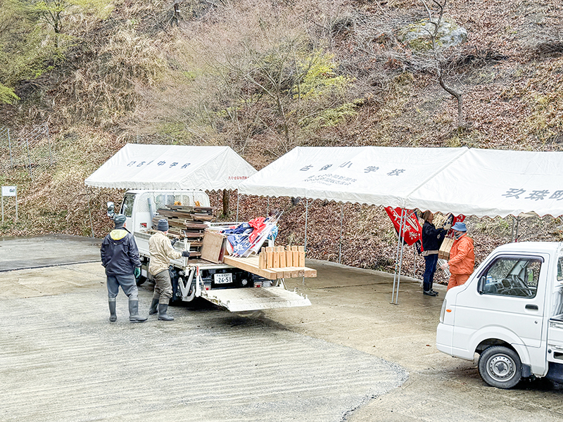 準備に玖珠支部が協力 かまどヶ岩の春大祭