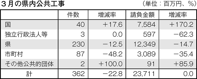 請負金額は増減なし 3月・公共工事動向〈県内〉