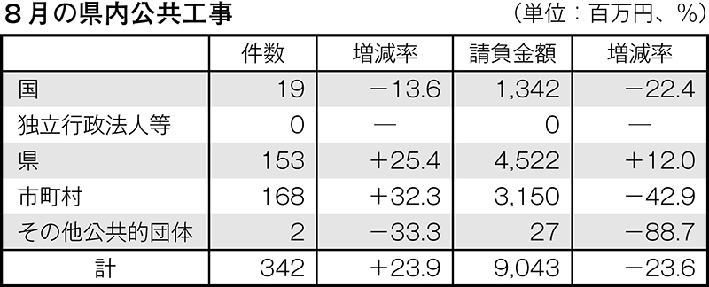 請負金額は23・6%減 8月、公共工事動向〈県内〉