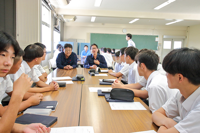 県建設産業女性人材確保・活躍推進事業「Buildy(ビルディ)」の一環で19日、中津東高校土木...