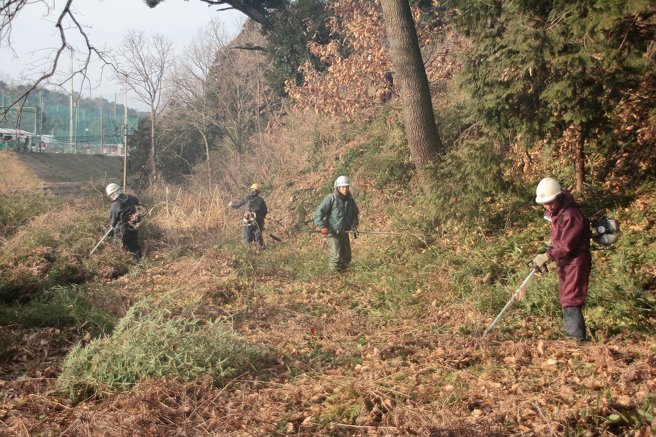 県造園建設業協会は7日、大分市小佐井の當陽寺で、会員27人が参加して、草刈りや竹伐採などのボラ...