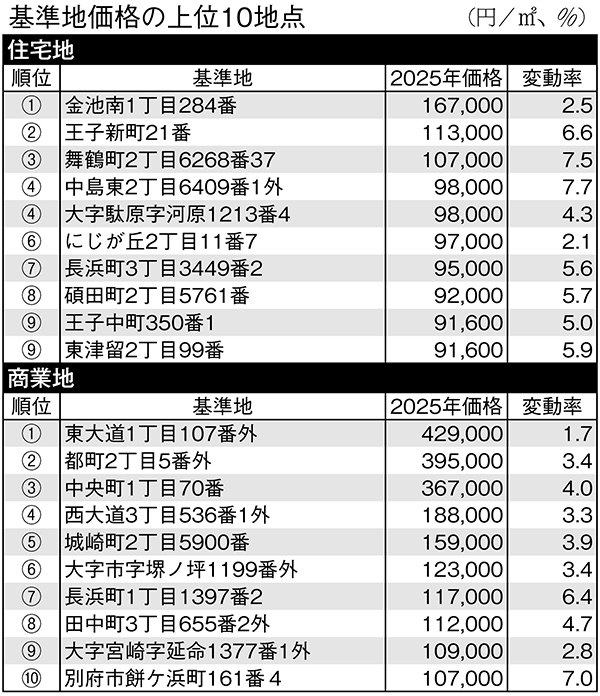 住宅・商業地共に上昇 25年・県内地価調査結果〈県土木建築部〉