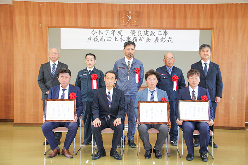豊後高田土木事務所は17日、同事務所で2025年度優良建設工事の所長表彰式を開いた。24年度に...