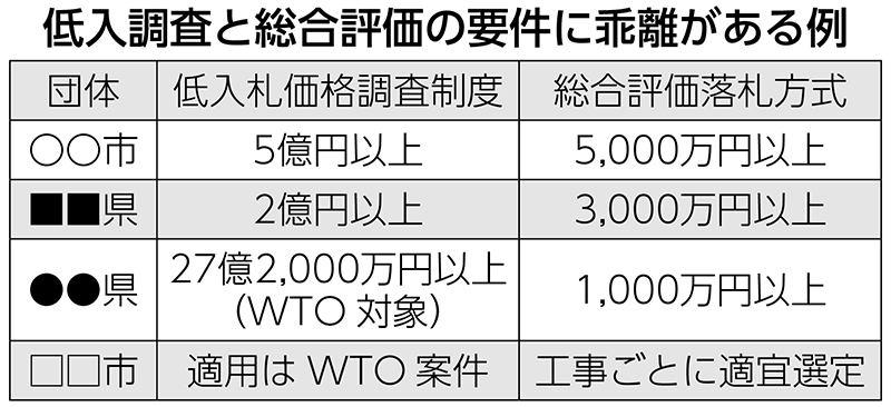 国土交通省は、都道府県・政令市の発注工事でダンピング対策を強化するため、低入札価格調査制度の適...