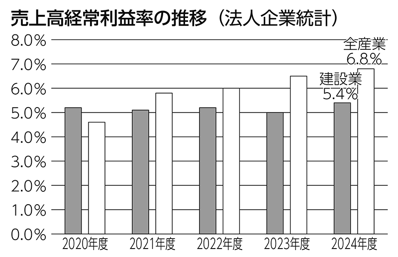 財務省が1日に発表した法人企業統計によると、2024年度の建設業の経常利益は前年度比11・2%...