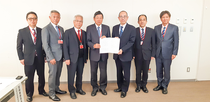 県土地改良建設研究会の利光正臣会長と県土地改良事業団体連合会の義経賢二会長は1日、九州農政局を...