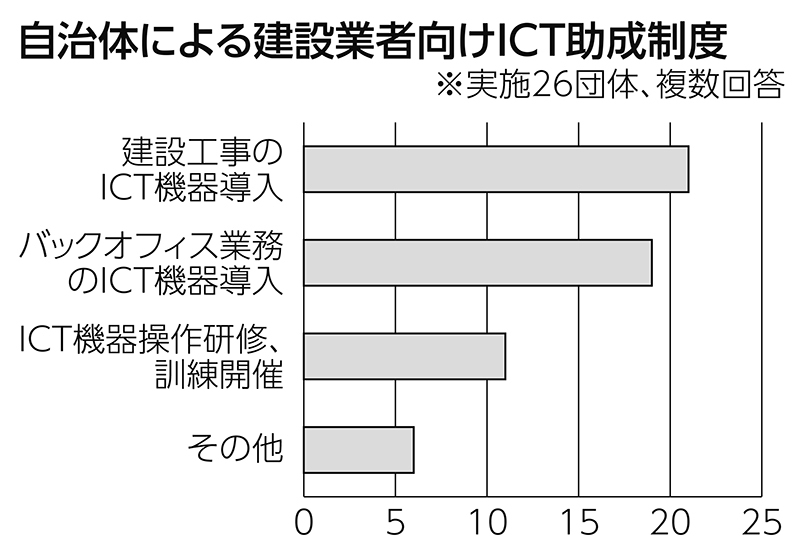 全国の都道府県・政令市の約4割に当たる26団体が、建設業のICT活用に対する助成制度を設けてい...