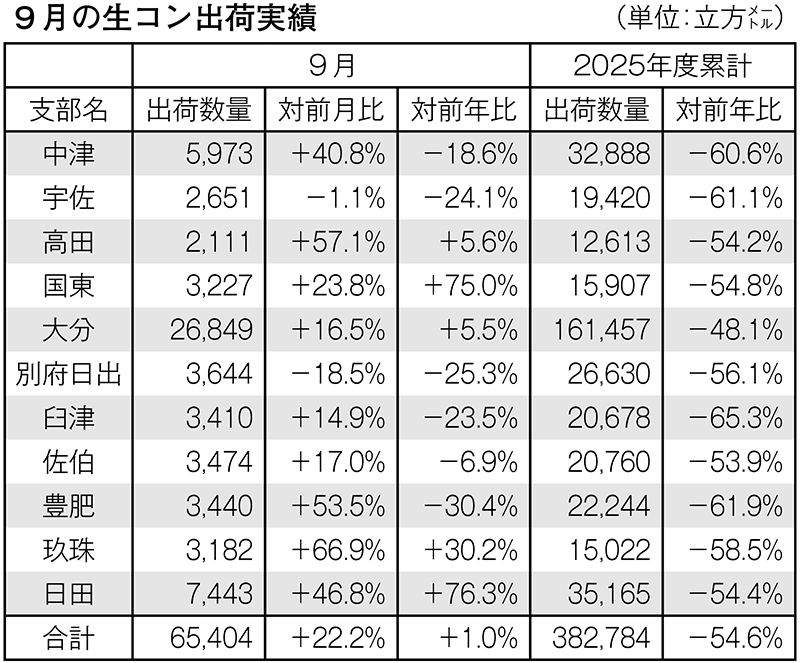 日田など5地区が増加 9月・生コン出荷量〈県内〉