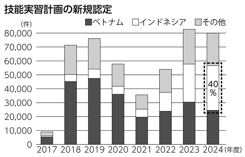 インドネシアが初めて最多 技能実習計画の新規認定〈OTIT〉