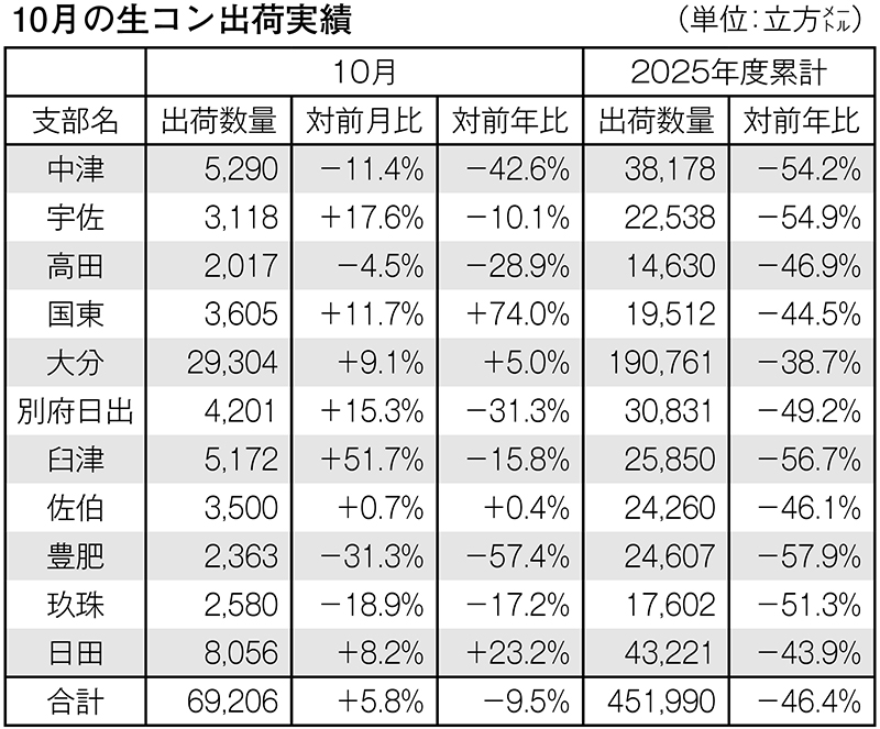 国東地区が74%増 10月・生コン出荷量〈県内〉