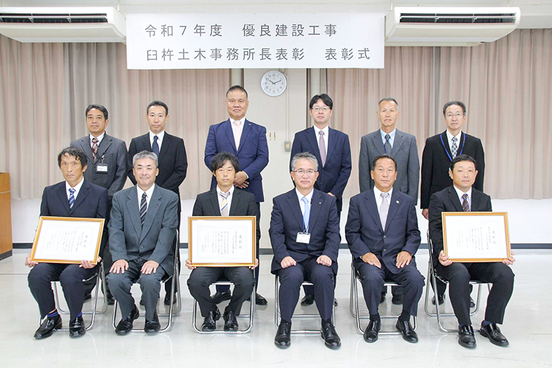 臼杵土木事務所は9月25日、2025年度の優良建設工事所長表彰式を開いた。対象は24年度中に完...