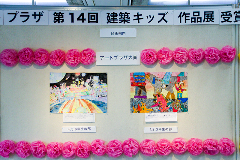 大分市アートプラザ2階アートホールで第14回アートプラザ建築キッズ作品展が2月1日まで開かれて...